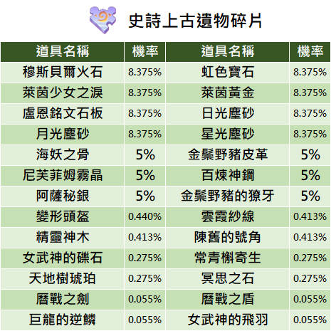 《RO仙境傳說:守護永恆的愛》道具產出機率表