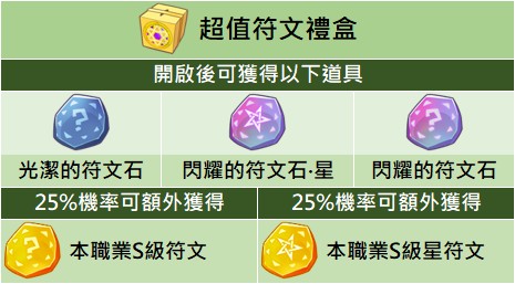 - 「超值符文禮盒」只有二轉及以上職業才能使用禮盒(僅限禮盒上架期間,當月版本已開放職業適用)