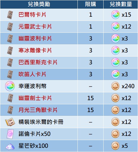 - 部分道具產出機率請參閱相關公告說明:《RO仙境傳說:守護永恆的愛》道具產出機率表