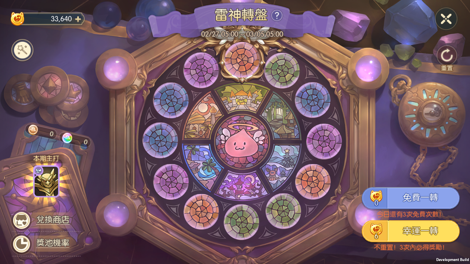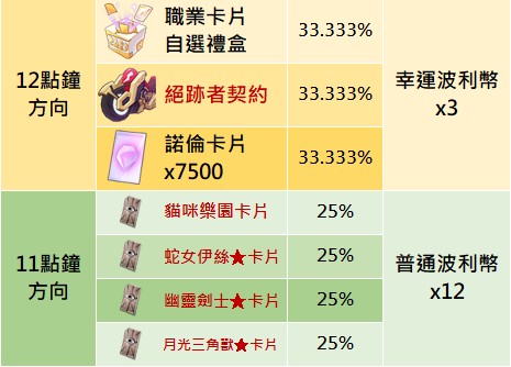 - 當轉到「已獲得」獎勵時,不會獲得該獎勵,而是獲得該格的「替換獎勵」,並且結束本輪轉盤,轉盤將免費自動重置盤面