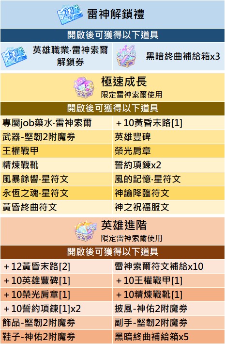 ※冒險者通過購買「雷神解鎖禮」獲取【英雄職業‧雷神鎖爾解鎖券】即可解鎖英雄職業『雷神索爾』