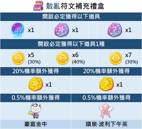 - 「散亂符文補充禮盒」只有二轉及以上職業才能使用禮盒(僅限禮盒上架期間,當月版本已開放職業適用)