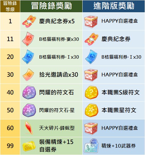 - 可選擇花費 68B格貓金幣 解鎖【冒險錄-進階版】獲得更多活動獎勵!