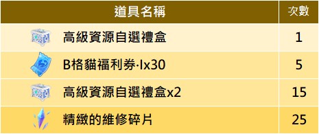 🔔使用「B格貓金幣」累計抽取次數達到指定目標,即可於活動介面領取對應獎勵