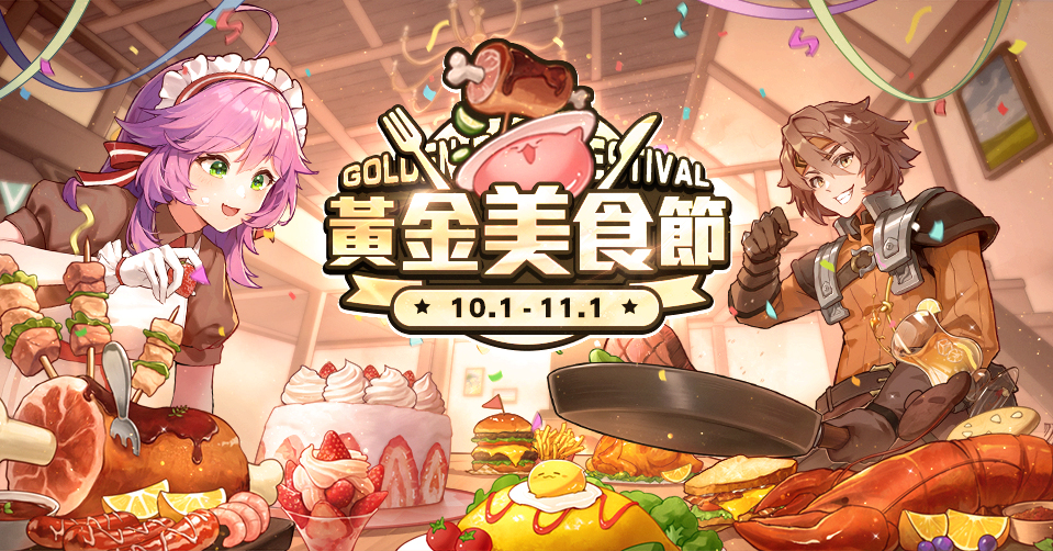 - 冒險者通過完成「黃金美食節」各項活動,可以獲得冒險經驗提升【美食冒險錄】等級,領取稀有獎勵!