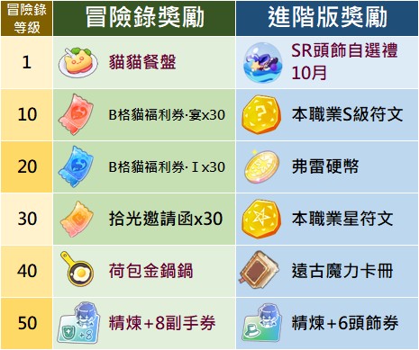 - 可選擇花費 68B格貓金幣 解鎖【冒險錄-進階版】獲得更多活動獎勵!