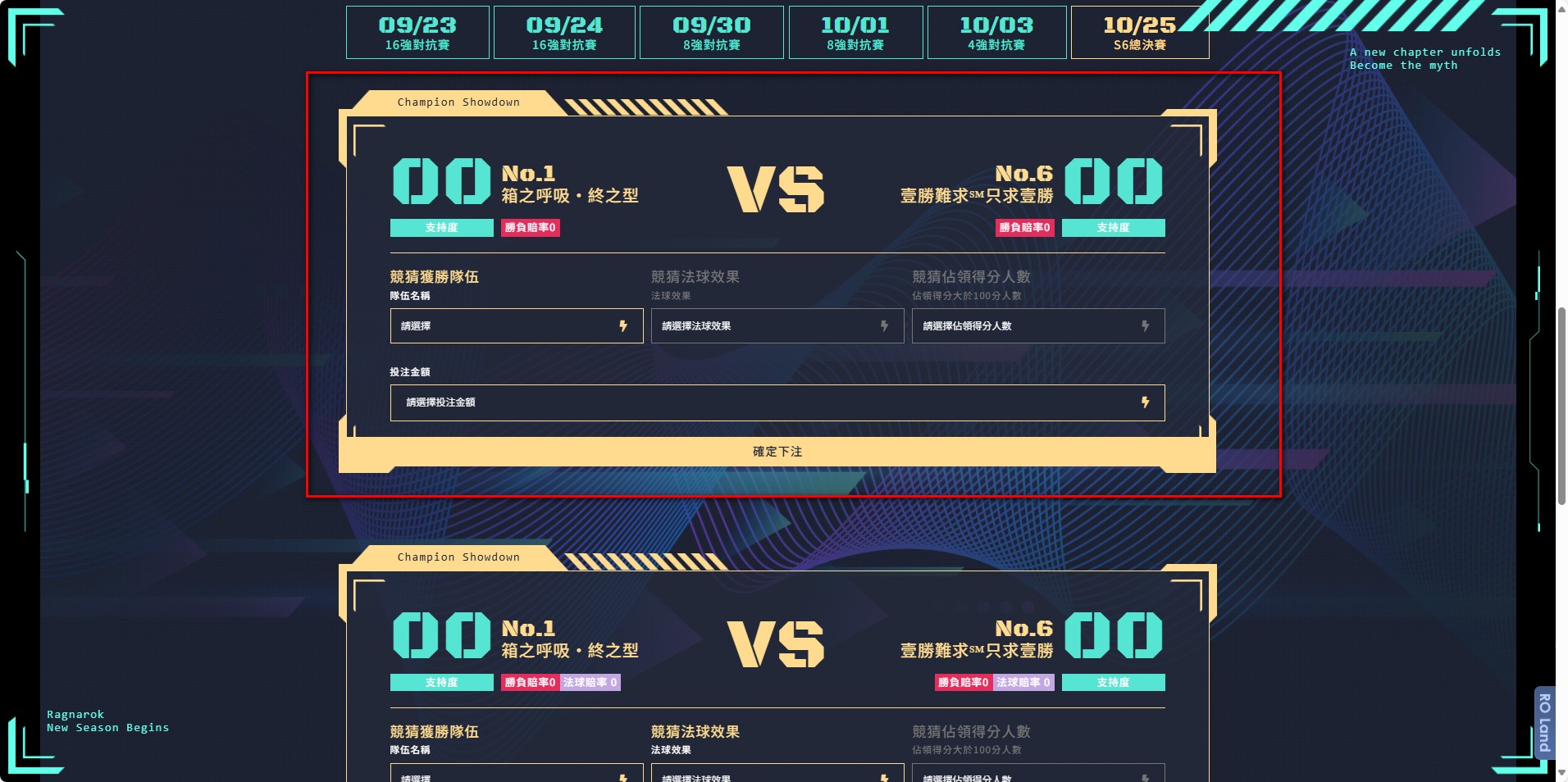 1.總決賽期間(即日起至10/25)登入即可領取競猜幣,並調整為:31,500競猜幣(每個帳號僅可領取一次)