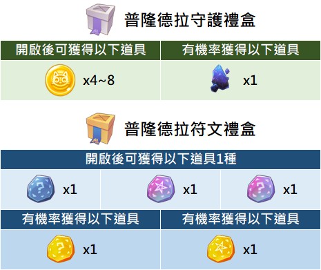 - 開啟「驚奇寶箱」,冒險者會被隨機傳送至活動指定地圖,完成任務後可獲得:「普隆德拉守護禮盒」x1、「寶箱碎片」x1👉帳號每日獲得上限1次