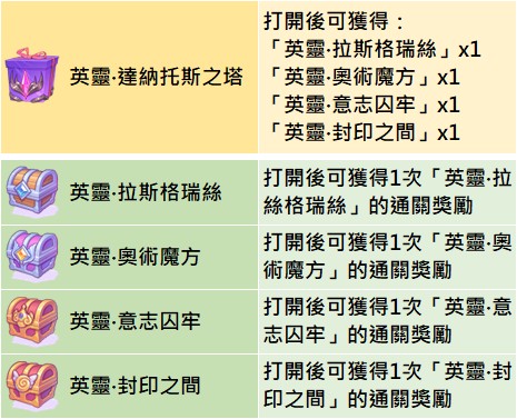 - 活動期間,通過達納托斯之塔英靈難度將可獲得額外獎勵👉每檔獎勵帳號限獲得1次