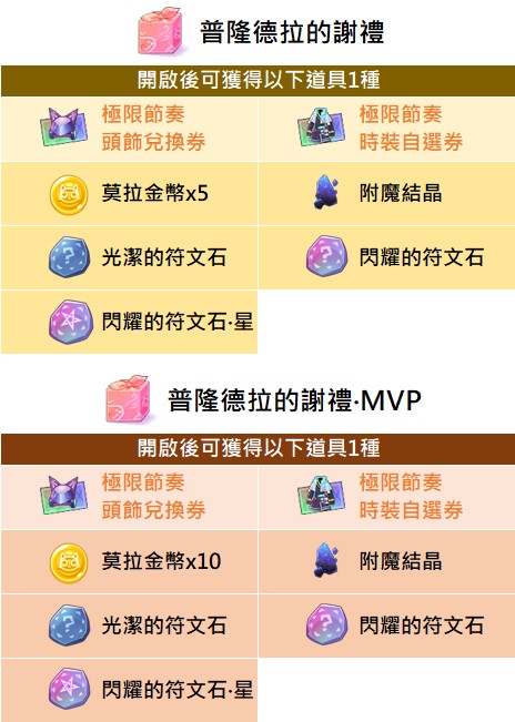 📌【普隆德拉的謝禮‧MVP】累計開啟3次必定獲得「極限節奏頭飾兌換券」