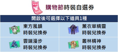 - 冒險者通過完成「普隆德拉購物節」各項活動,可以獲得「普隆德拉購物券」、可選擇兌換商店內任一獎勵