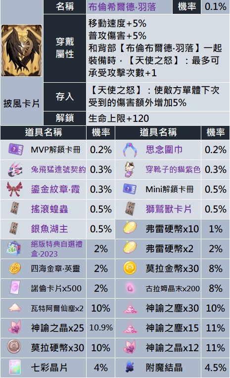 - 部分道具產出機率請參閱相關公告👉《RO仙境傳說:守護永恆的愛》道具產出機率表