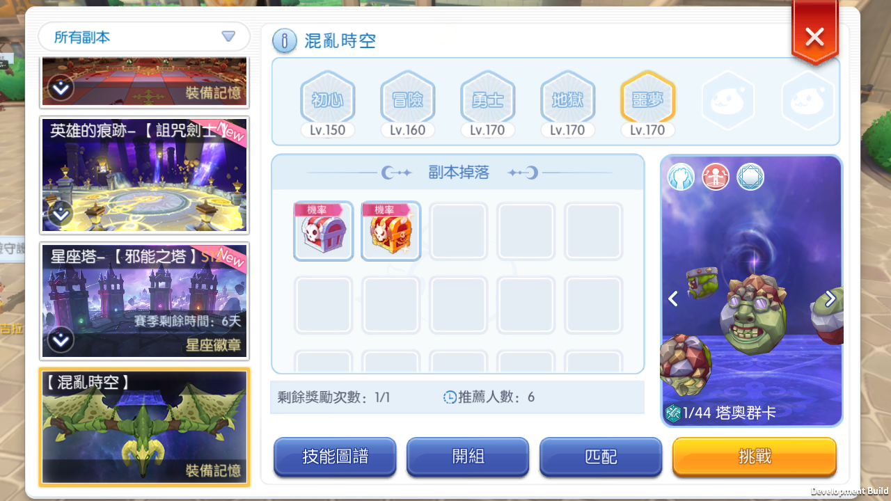 2、此次【混亂時空】將分為5個難度,所有難度間共用獎勵次數,每週帳號僅可獲得一次獎勵