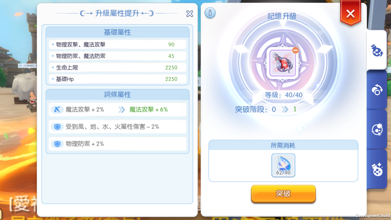 5、新增記憶突破功能:在裝備記憶達到40級時,解鎖第一次記憶突破功能,突破後裝備記憶的【攻擊詞條】屬性獲得提升