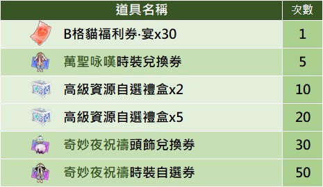 - 使用「B格貓金幣」累計抽取次數達到條件,可於活動介面領取對應獎勵(B格貓福利券抽取次數不列入連抽獎勵之計算)