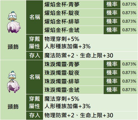 - 部分道具產出機率請參閱相關公告👉《RO仙境傳說:守護永恆的愛》道具產出機率表