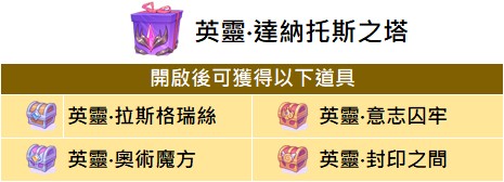 - 活動期間,通過【達納托斯之塔】英靈難度將可獲得額外獎勵👉每檔獎勵帳號限獲得1次