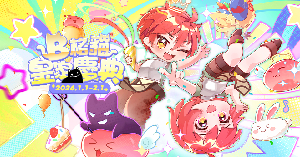 - 冒險者通過完成「B格貓皇家慶典」各項活動,可以獲得冒險經驗提升【活動冒險錄】等級,領取稀有獎勵!
