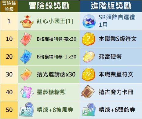 - 可選擇花費 68B格貓金幣 解鎖【冒險錄-進階版】獲得更多活動獎勵!