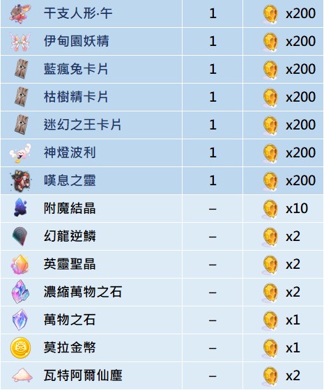 - 【天桴結晶】為永久兌換道具,無兌換時效之限制