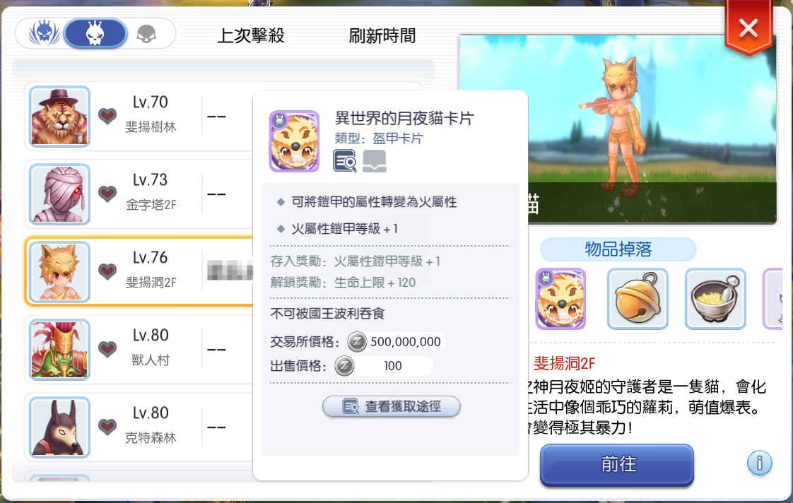 1、野外MVP冰爆騎士、月夜貓增加了對應的異世界系列卡掉落