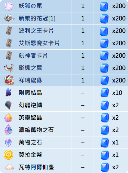 - 【天江結晶】為永久兌換道具,無兌換時效之限制