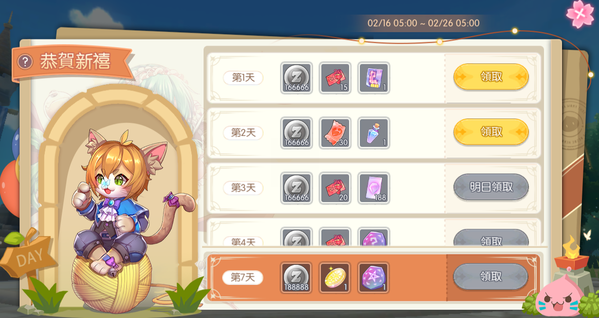 - 共7個連續任務,完成任務即可獲得對應獎勵
