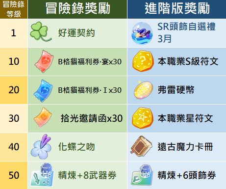 - 可選擇花費 68B格貓金幣 解鎖【冒險錄-進階版】獲得更多活動獎勵!