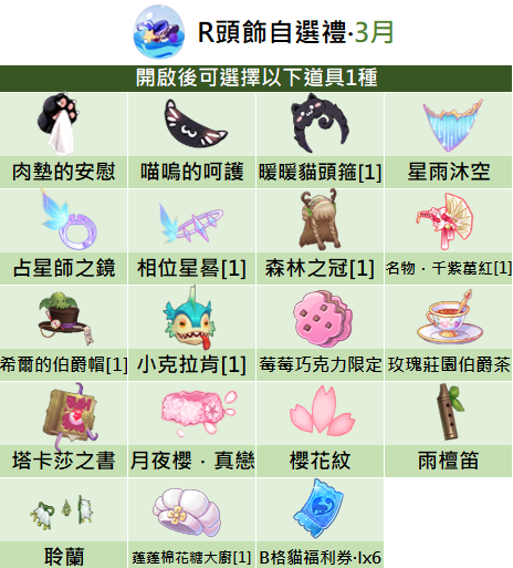 - 每次完成捐獻可獲得:「料理兌換券」x1、「墜星隕鐵」x1、「波利成長秘藥」x1、「B格貓福利券‧宴」x3