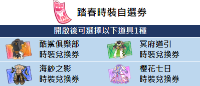 - 冒險者通過完成「花開踏青時」各項活動,可以獲得「旅跡幣」、可選擇兌換商店內任一獎勵
